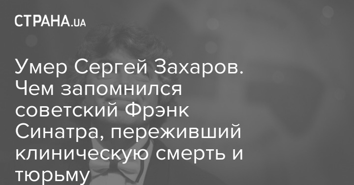 В Москве, в возрасте 68 лет, умер певец Сергей Захаров, баритон которого сравнивали с голосом Фрэнка Синатры. Он был одним из самых популярных певцов СССР в 70-х годах. Исполнил такой хит, как "Три белых коня", снялся в фильме "Небесные ласточки", спел песню к заставке популярного российского шоу "Моя семья". Захаров родился в украинском Николаеве, его дед был первым трубачом Одесского оперного оркестра.