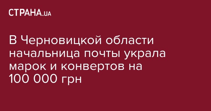 В Кельменецком районе Черновицкой области начальница сельского отделения "Укрпочты" украла марок и конвертов на сумму более чем 100 000 грн.