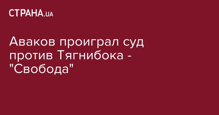 В ВО "Свобода" заявили, что Шевченковский райсуд в Киеве отказался удовлетворить иск министра МВД Арсена Авакова о защите его чести, достоинства и деловой репутации к главе партии Олегу Тягнибоку. Об этом сообщили в пресс-службе "Свободы".