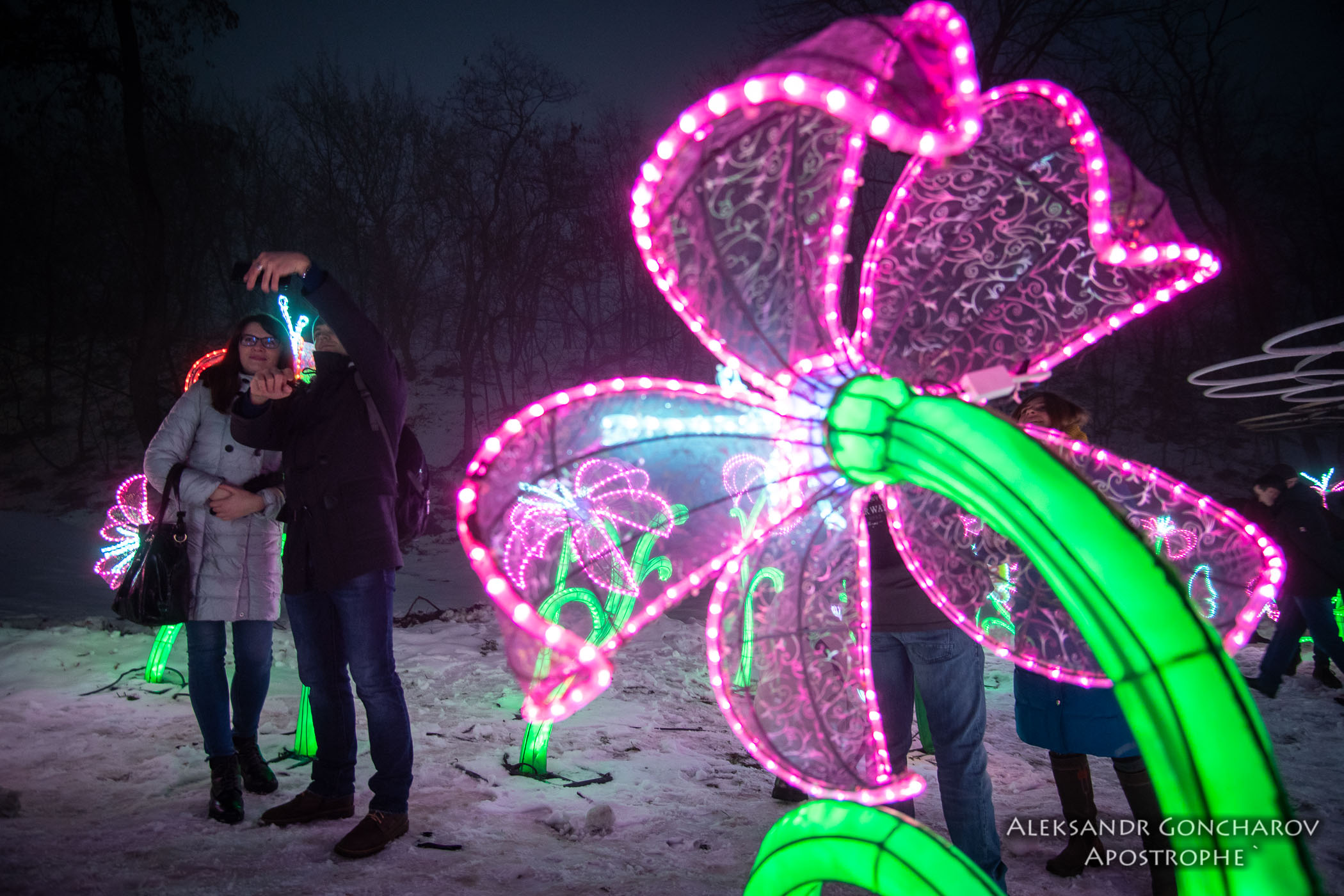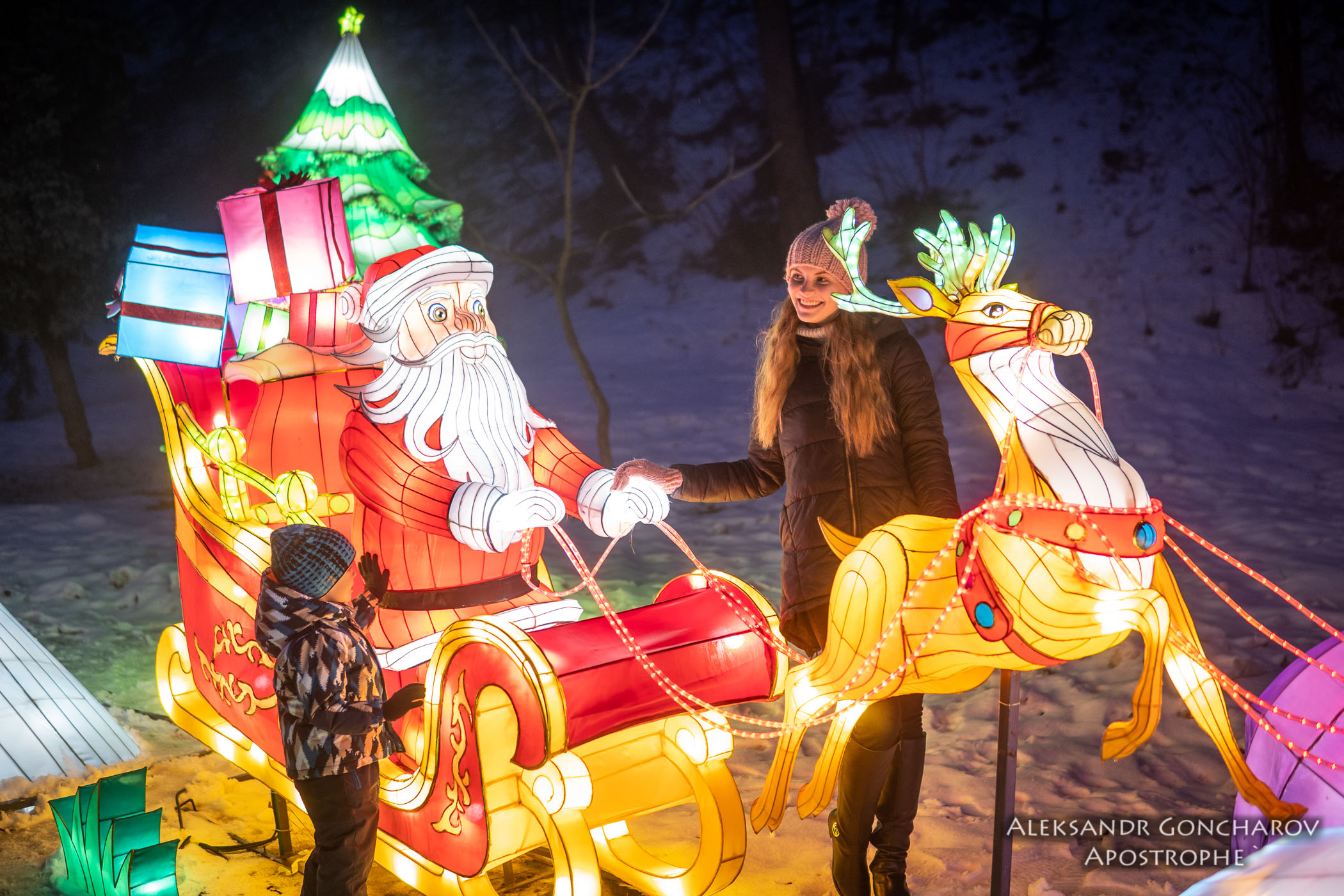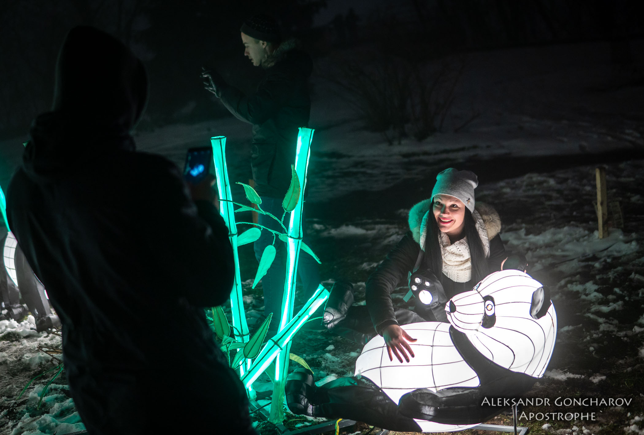 Посетителей восхитили масштабные световые инсталляции, каждая из которых символизирует древнюю народную сказку или легенду. Например, здесь есть сады панд и фламинго, карета Золушки, лес с оленями и многое другое. Центральным экспонатом выставки стал 40-метровый светящийся дракон.