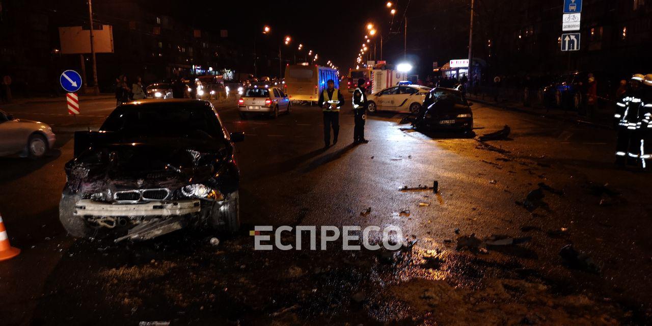 Столкнулись два "евробляхера", которые двигались по бульвару навстречу друг другу. На пересечении с улицей Кибальчича водитель автомобиля Opel поворачивая налево, не пропустил ВМW, водитель которого не успел среагировать и протаранил Opel в правый бок. Автомобили разбросало по всей дороге, а BMW развернуло на 180 градусов. Пострадали три человека из Opel, одного деблокировали из автомобиля с помощью ГосЧС.