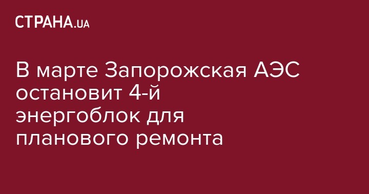 Запорожская АЭС с 12 марта отключит четвертый энергоблок от энергосистемы страны на средний ремонт, который продлится 110 суток, сообщается на сайте ведомства.