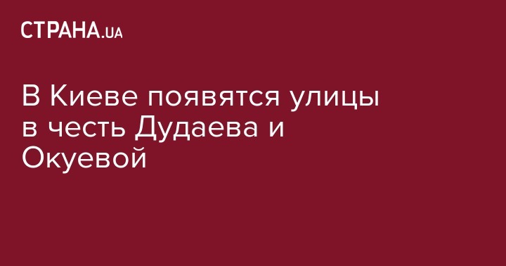 В Киеве появятся улицы в честь Дудаева и Окуевой