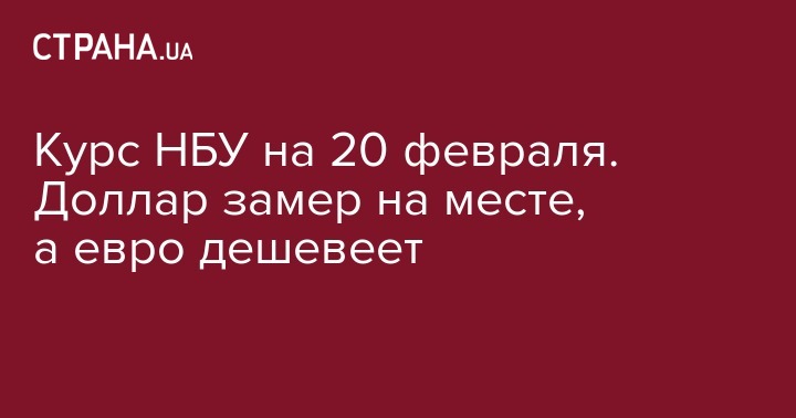 В среду, 20 февраля, Национальный банк Украины (НБУ) установил официальный курс гривны по отношению к основным валютам. Стоимость доллара, по сравнению с предыдущим банковским днем, значительно не изменилась, а вот евро потерял в цене 11 копеек. Об этом сообщается на сайте регулятора.
