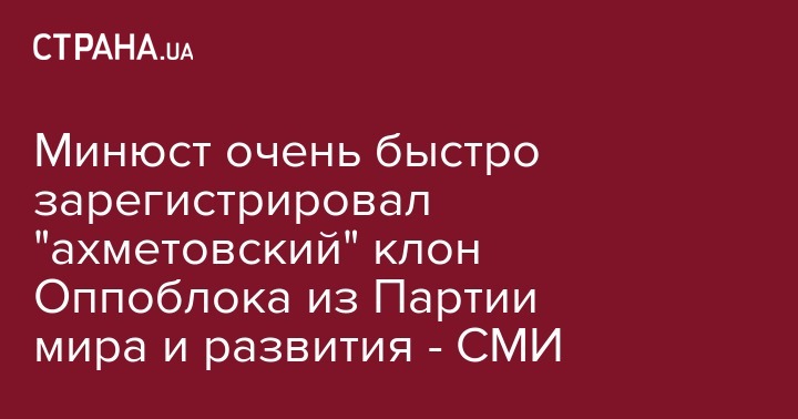 Минюст очень быстро зарегистрировал "ахметовский" клон Оппоблока из Партии мира и развития - СМИ