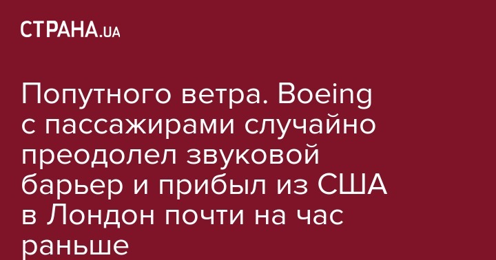 Самолет летел по маршруту Лос-Анджелеса - Лондон и попал в мощный попутный воздушный поток, что и позволило лайнеру преодолеть звуковой барьер, передает Popular Mechanics.