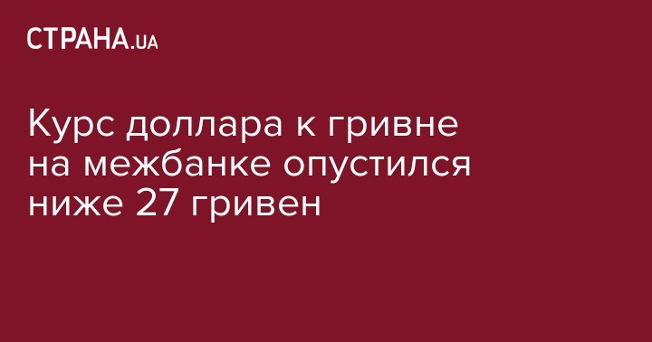 Национальный банк Украины опубликовал справочный курс доллара США на межбанковском валютном рынке по состоянию на 12.00 21 февраля 2019 года, который составил 26,9995 гривен за доллар, что на 10 копеек ниже установленного в предыдущий день курса (27,0933 за доллар). Об этом сообщается на сайте НБУ.