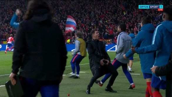 Cтадион взорвался, игроки бросились на трибуны, где болельщики едва не задушили их в объятиях. А главный тренер Атлетико Диего Симеоне показал всему миру, скажем так, очень мужской жест. Словами это сложно описать. Лучше просто посмотреть. Видео разместил в сети пользователь с ником CarefreeKizzy.