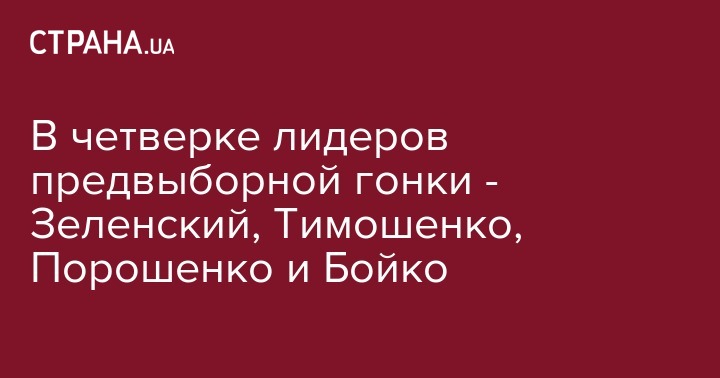 Социологические опросы, которые проводят разные компании зафиксировали четверку лидеров предвыборной гонки - Владимира Зеленского, Юлию Тимошенко, Петра Порошенко и Юрия Бойко.