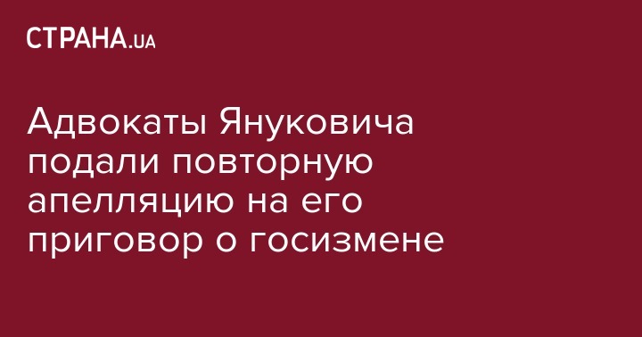 Адвокаты Януковича подали повторную апелляцию на его приговор о госизмене
