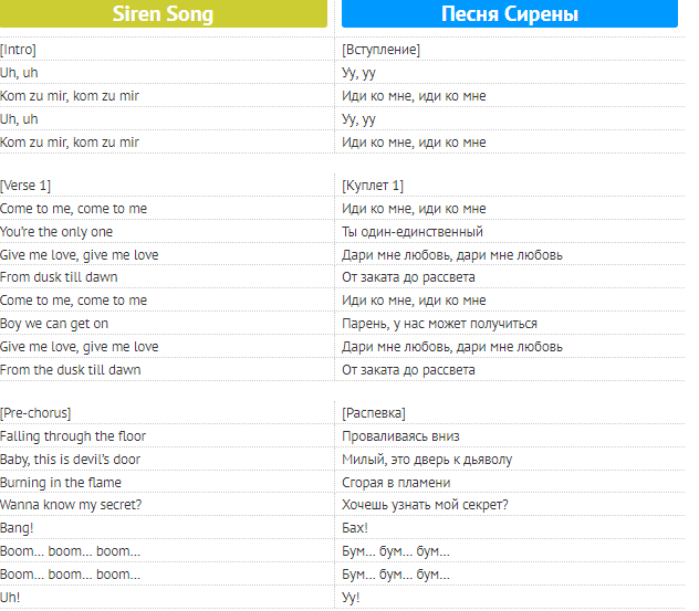 Текст "песни Сирены" Maruv – на английском и на русском.