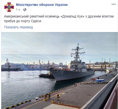 Отметим, что недавно украинские власти призывали корабли НАТО войти в Черное море и наблюдать за очередной попыткой прохода ВМС Украины через Керченский пролив. Запад пока не комментировал эти просьбы. Но "Кук" пришел в Одессу как раз после призывов Киева. Действительно ли что-то затевается - или это просто демонстрация поддержки, покажут ближайшие дни.