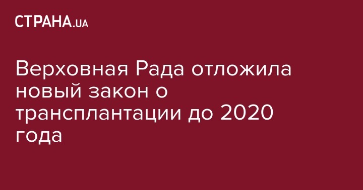 Отмечается, что комитет Верховной Рады Украины по здравоохранению доработал проект закона о трансплантации №9461-д и внес его на рассмотрение народных депутатов. В нем предусмотрена отсрочка введения в действие нового закона трансплантации до 1 января 2020 года, что позволит пролонгировать до 31 декабря 2019 года закон о трансплантации, который действовал ранее. Это позволит правительству разблокировать приостановленную в данный момент трансплантацию органов из-за неготовности госреестров.