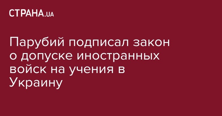 Спикер Верховной Рады Андрей Парубий 1 марта подписал закон об одобрении решения президента Украины о допуске подразделений вооруженных сил других государств на территорию Украины в 2019 года для участия во многонациональных учениях. Как сообщает сайт украинского парламента.