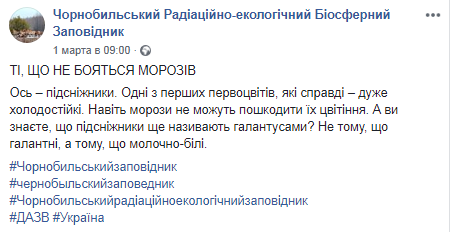 В первый день весны в Чернобыльской зоне отчуждения взошли подснежники. Фото