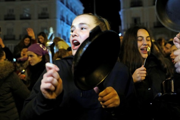 Так, в Испании сотни женщин вышли на центральную площадь Мадрида, стуча в кастрюли и сковородки, передает Reuters.