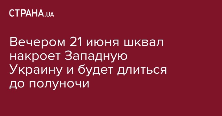 Вечером 21 июня шквал накроет Западную Украину и будет длиться до полуночи