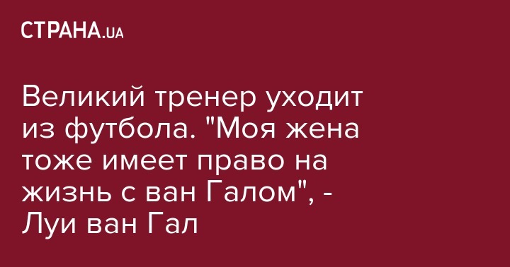 "Я заканчиваю с этим. Моя жена перестала работать 22 года назад, чтобы сопровождать меня на работе за границей. Я тогда пообещал ей, что уйду на пенсию в 55 лет. Сейчас мне больше 65. Я не могу продолжать, -пояснил ван Гал. - Как и игроки, моя жена также имеет право на жизнь с Луи ван Галом. И могу сказать, что она счастлива".