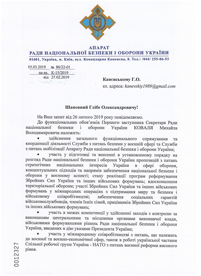Первый замсекретаря СНБО Олег Гладковский, уволенный из-за коррупционного скандала, отвечал за координацию военно-технической и военно-промышленной политики и функционирование оборонно-промышленного комплекса, а также участие в Совместной рабочей группе Украина - НАТО по оборонно-техническому сотрудничеству. Об этом сообщает Глеб Каневский, председатель экспертной организации StateWatch со ссылкой на письмо аппарата СНБО, пишет УП.