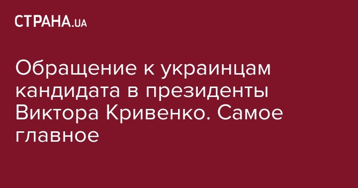 Также "Страна" публиковала самое главное из обращения к украинцам кандидата в президенты Игоря Шевченко.