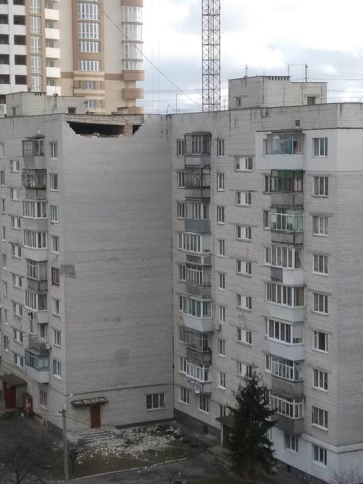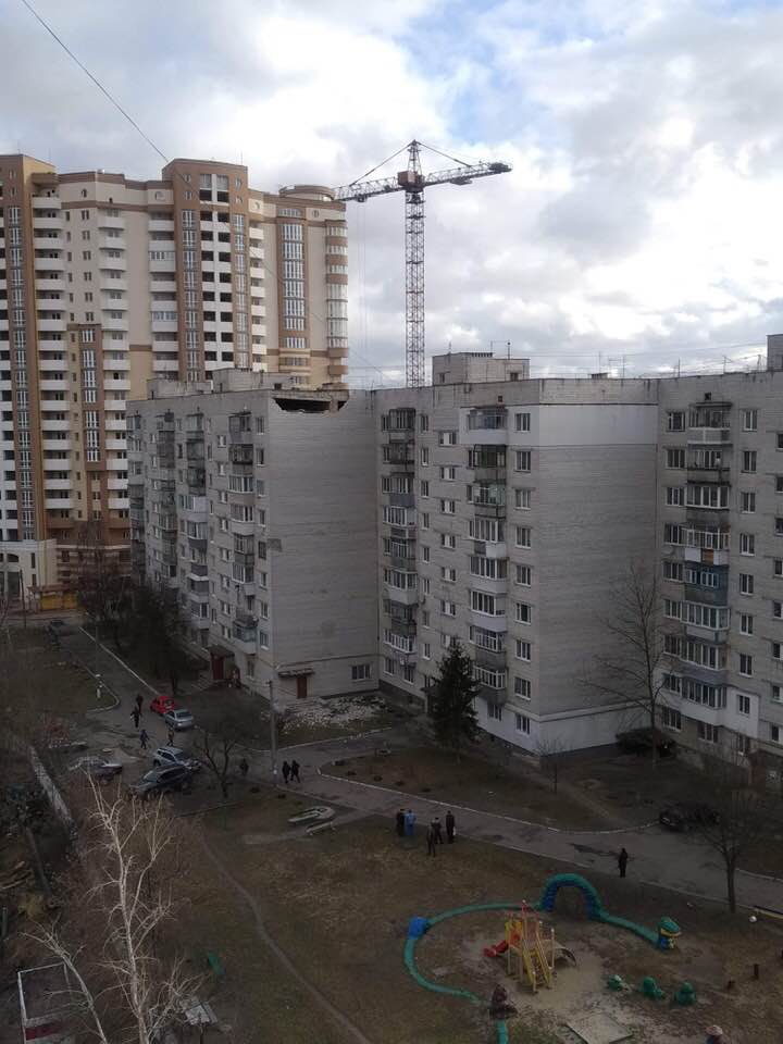 Ураган сдул часть стены с многоэтажки в Борисполе. Фото
