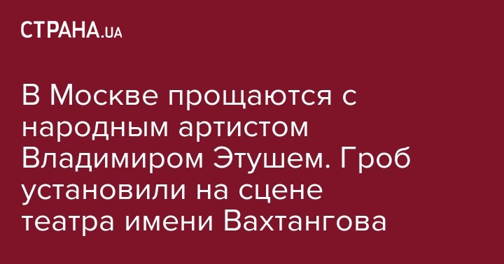 Траурная церемония проходит в московском Театре имени Вахтангова. Гроб с телом актера поставили на сцене, над ним размещен портрет Этуша, рядом находятся члены семьи и близкие друзья, люди приносят венки, алые и белые розы.