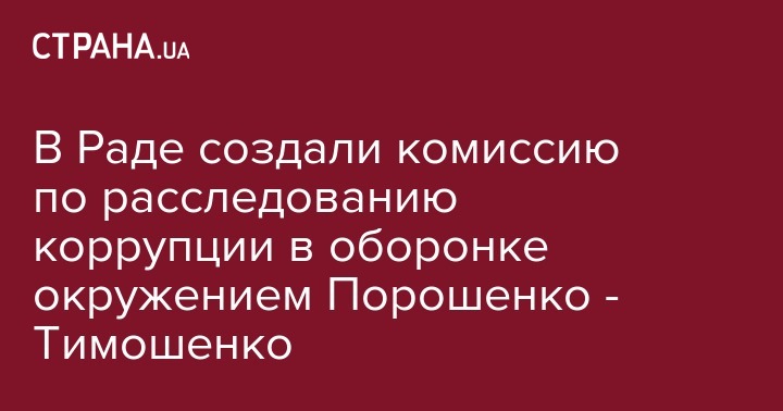 В Раде создали комиссию по расследованию коррупции в оборонке окружением Порошенко - Тимошенко