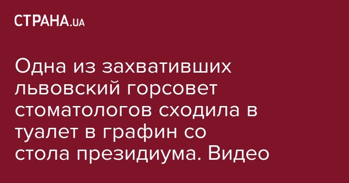 В интернете появилась видеозапись с камеры наблюдений, на котором одна из львовских стоматологов справляет нужду в фойе большого сессионного зала городского совета Львова. Видео опубликовано 12 марта на сайте "Без Табу"