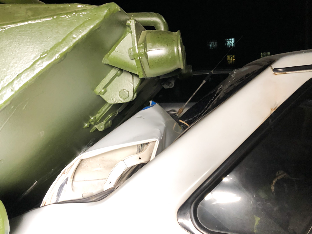 Отмечается, что в результате аварии никто не пострадал. Lada получила серьезные повреждения всей задней части. Бронетранспортер а не получил. Из-за столкновения на улице Заболотного в сторону станции метро "Теремки" образовалась большая пробка.