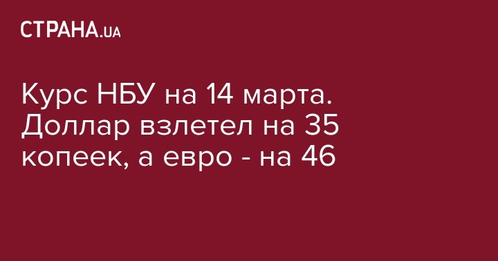 Курс НБУ на 14 марта. Доллар взлетел на 35 копеек, а евро - на 46
