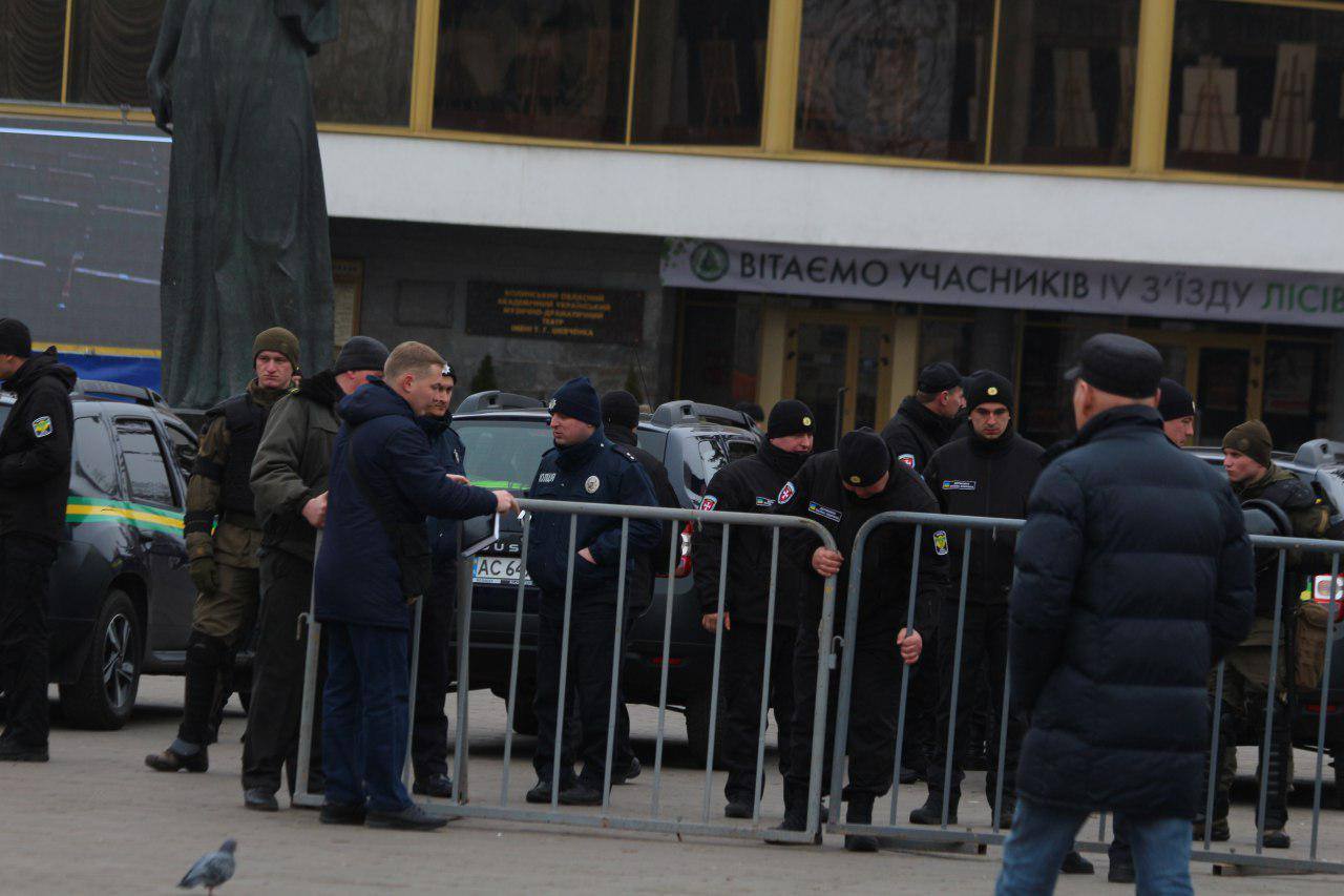 На фото видно, что в Луцке полным ходом идут приготовления к приезду президента.