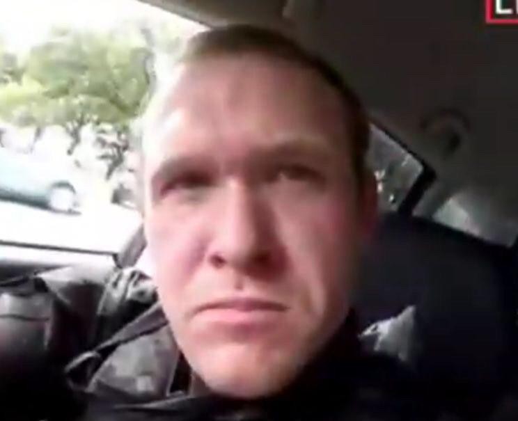 Во время атаки Таррант  вел онлайн-трансляцию нападения, камера была закреплена у него на голове.  На записи, которая длится около 17 минут, видно, как он садится в машину. На переднем сидении и в багажнике у него - оружие: автоматы и карабины к ним. По дороге он слушал марш британских гренадеров и сербскую песню Remove Kebab времен балканской войны.