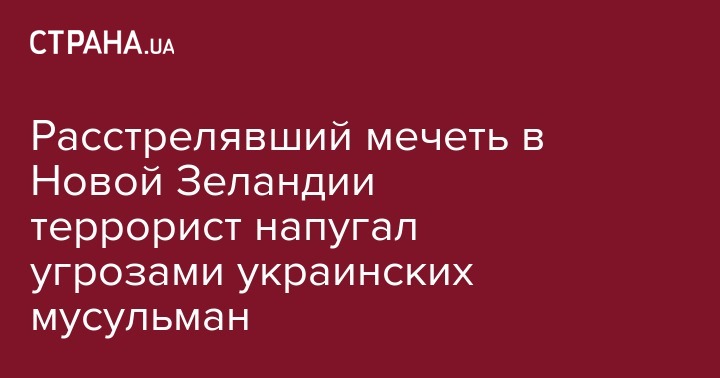Стрелок, участвовавший в теракте в мечети Новой Зеландии, высказывал угрозы в адрес других мусульман, включая украинских. Об этом на своей странице в Facebook сообщил муфтий Духовного управления мусульман Украины "УММА" Саид Исмагилов.