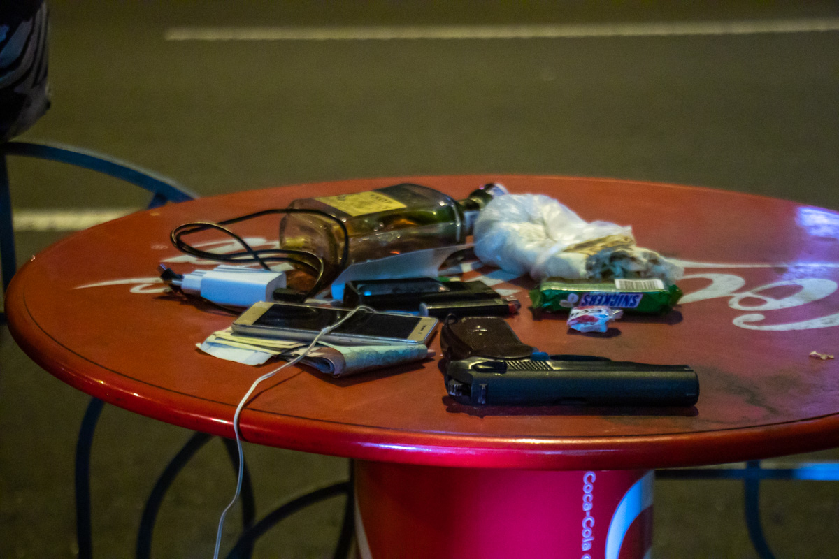 По словам парней, мужчина с бутылкой коньяка, которую он распивал "с горла" вышел из заведения "Big mama" и начал приставать к их подруге. Компания сделала ему замечание, но тот в свою очередь сначала начал махать руками, после чего достал из куртки пистолет и пытался приставить его к голове одного из парней. Ребята выхватили у мужчины из рук оружие и схватили его. В этот момент по Бессарабской площади проезжал наряд патрульной полиции. Правоохранители заметили потасовку и после выяснения обстоятельств случившегося, задержали нападавшего. Парни передали пистолет сотрудникам полиции, оружие оказалось травматическим. Нарушитель сообщил, что носит его в целях безопасности.