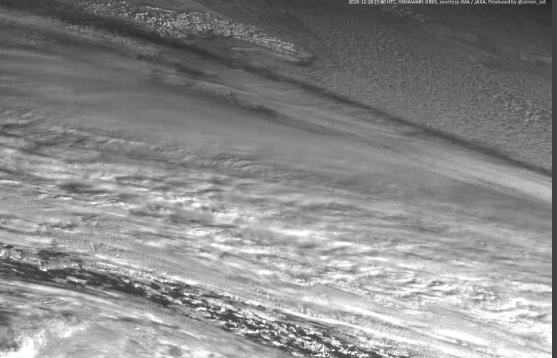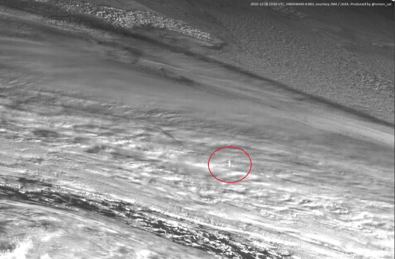 При этом японский спутник "Химавари" зафиксировал почти вертикальный столб дыма от болида - он вошел в атмосферу очень резко. Также можно увидеть длинную тень этого столба.