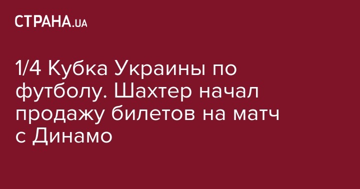 Сегодня, 19 марта, билеты на матч 1/4 Кубка Украины между Шахтером и киевским Динамо уже появились в продаже, передает пресс-служба "горняков". Этот поединок состоится 7 апреля на ОСК "Металлист" в Харькове. Начало в 17:00. На всех стадиях турнира команды проводят по одному матчу, так что полуфиналист Кубка будет определен именно в Харькове.