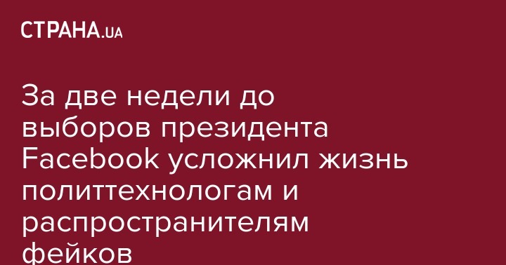 С 18 марта украинским рекламодателям в социальной сети Facebook необходима авторизация компании для охвата пользователей. Также перед выборами Facebook обещает сообщит, кто оплачивал политическую рекламу в Украине. Об этом написал журналист проекта "Радио Свобода" Radio Free Europe Кристофер Миллер.