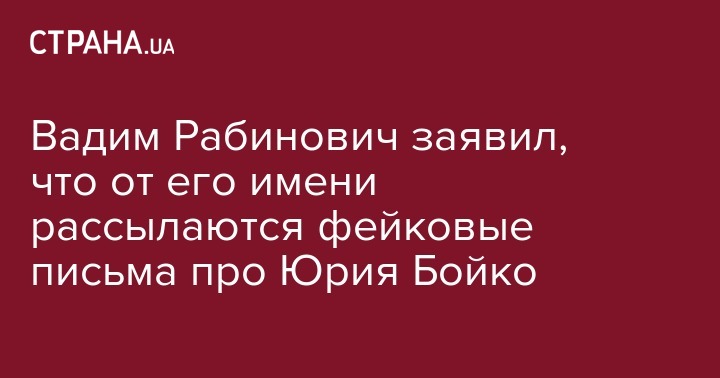 Вадим Рабинович заявил, что от его имени рассылаются фейковые письма про Юрия Бойко