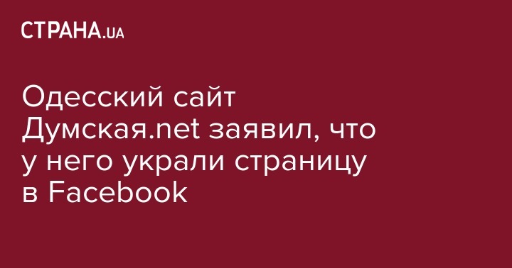 Главный редактор издания "Думская.net" Олег Константинов сообщил о том, что мошенники украли у одесского сайта страницу в  Facebook. Об этом он сообщил на своей странице в соцсети.