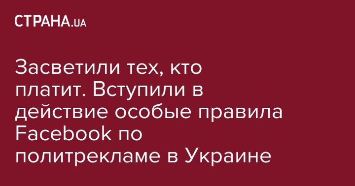 Компания Facebook, ранее обещавшая ужесточить правила размещения политической рекламы, сегодня остановила ее в своей социальной сети в Украине до верификации заказчиков.