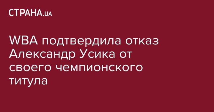 Всемирная боксерская ассоциация (WBA) подтвердила отказ украинского тяжеловеса Александра Усика от своего титула из-за перехода в супертяжеловесы. Об этом говорится на официальном сайте организации.