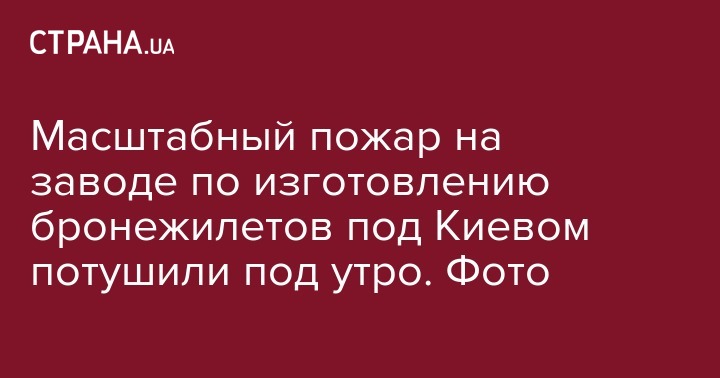 Масштабный пожар на заводе по изготовлению бронежилетов под Киевом потушили под утро. Фото
