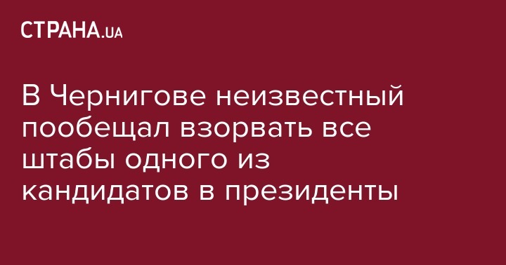 Сегодня, 31 марта, в день выборов президента Украины, неизвестный сообщил в полицию Чернигова о том, что намерен взорвать штабы одного из кандидатов в президенты Украины "в случае непрекращения подкупа избирателей".