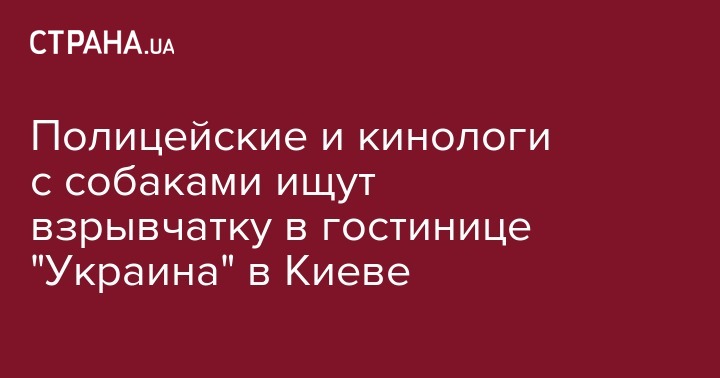 Полицейские и кинологи с собаками ищут взрывчатку в гостинице "Украина" в Киеве