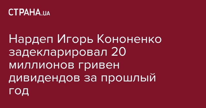 Игорь Кононенко, первый замглавы парламентской фракции БПП и ближайший соратник президента Порошенко указал в электронной декларации об имуществе и доходах за 2018 год почти 20 миллионов гривен дивидендов от ПАО "ЗНКИФ "ВИК", бенефициарным собственником которого он является. Об этом сообщает "Интерфакс-Украина"