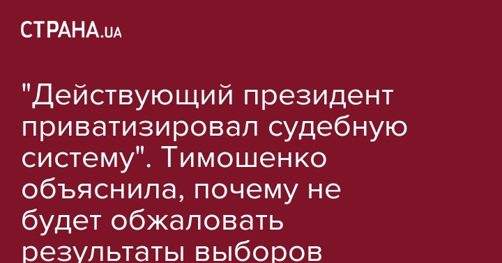 "Действующий президент приватизировал судебную систему". Тимошенко объяснила, почему не будет обжаловать результаты выборов