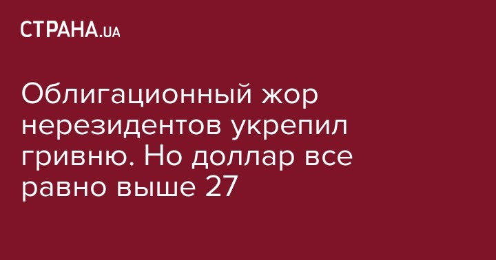 Облигационный жор нерезидентов укрепил гривню. Но доллар все равно выше 27