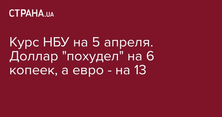 Курс НБУ на 5 апреля. Доллар "похудел" на 6 копеек, а евро - на 13