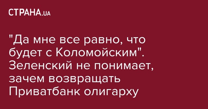 "Да мне все равно, что будет с Игорем Коломойским. Ну, это должны разбираться... "Приватбанк" сейчас – государственное учреждение, почему оно должно возвращаться Коломойскому? "- ответил Зеленский.