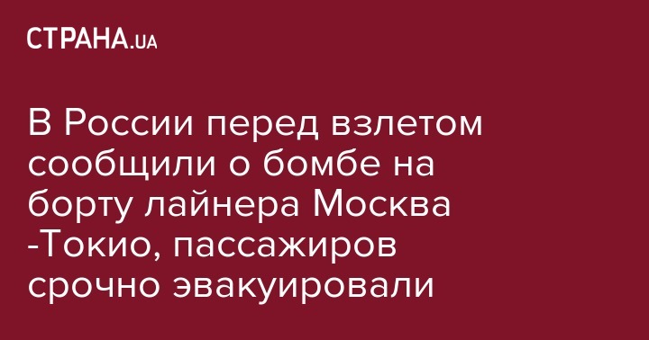 "Самолет Boeing Dreamliner "Японских авиалиний" (JAL) готовился к вылету в Токио в 17:15 по Москве (совпадает с киевским временем - Прим.Ред.), однако в экстренные службы поступил анонимный сигнал о том, что на борту якобы находится взрывное устройство. Командир принял решение немедленно эвакуировать пассажиров и отложить вылет", - говорится в сообщении.